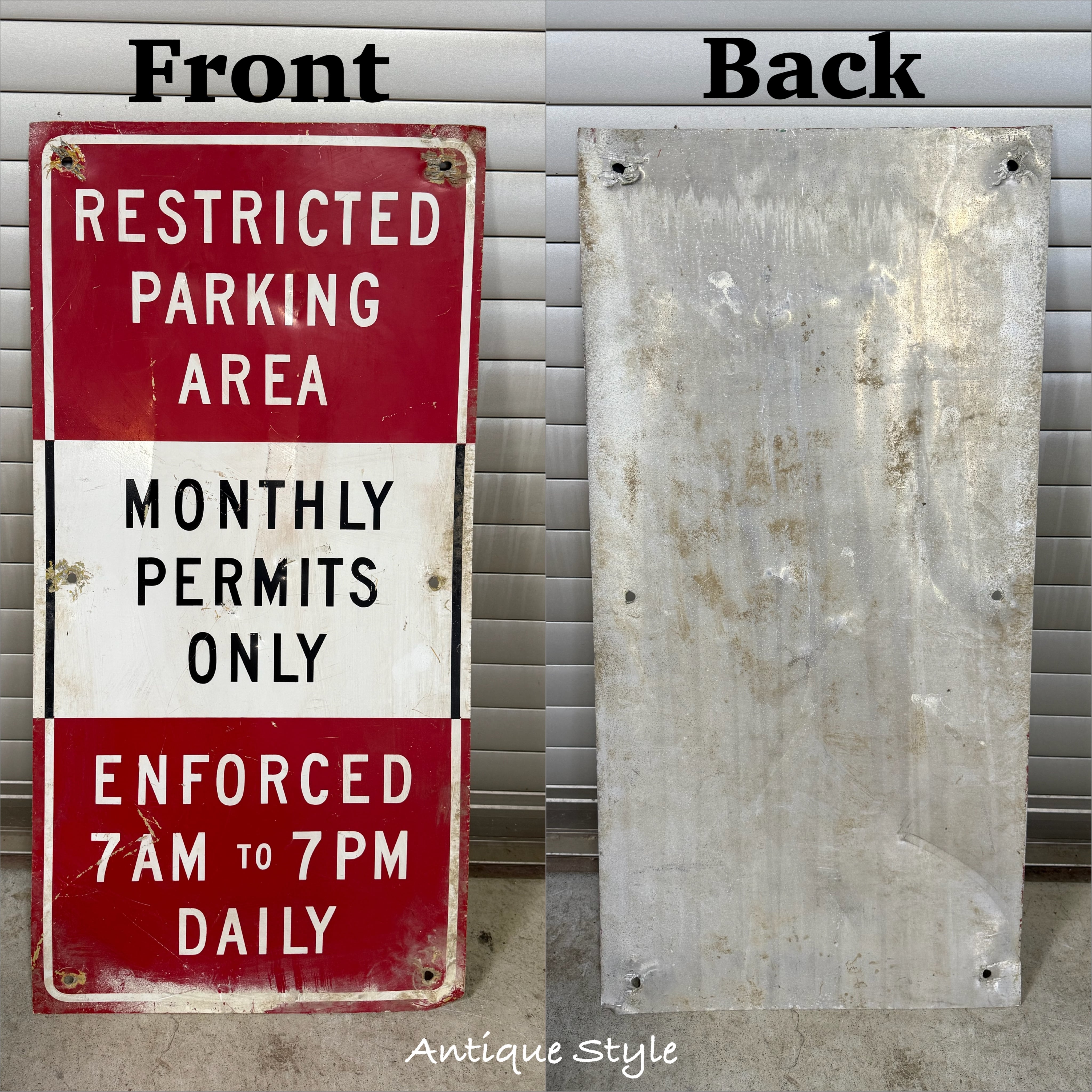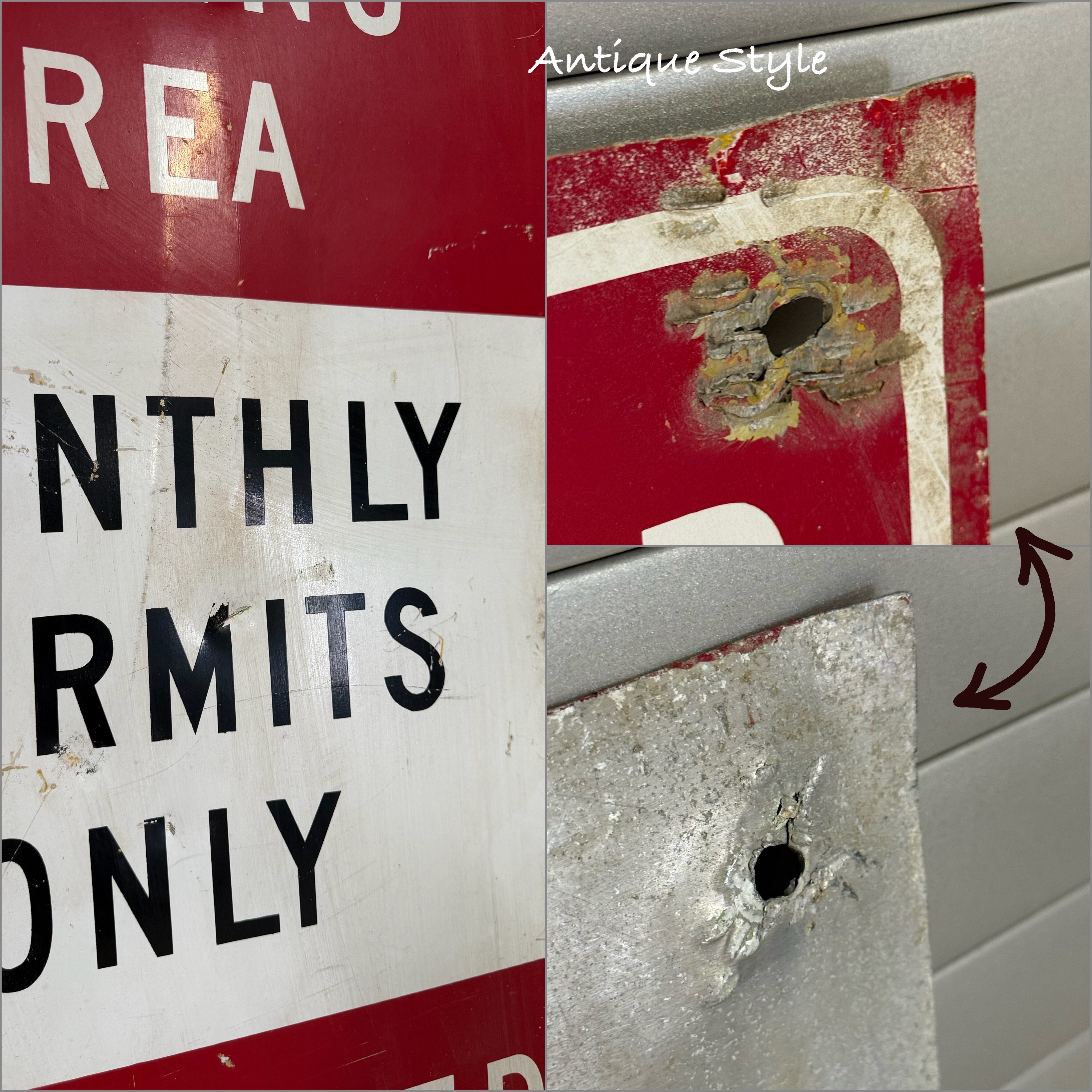 Used USA Road Sign Restricted Area Monthry Permits Only Metal Parking Sign