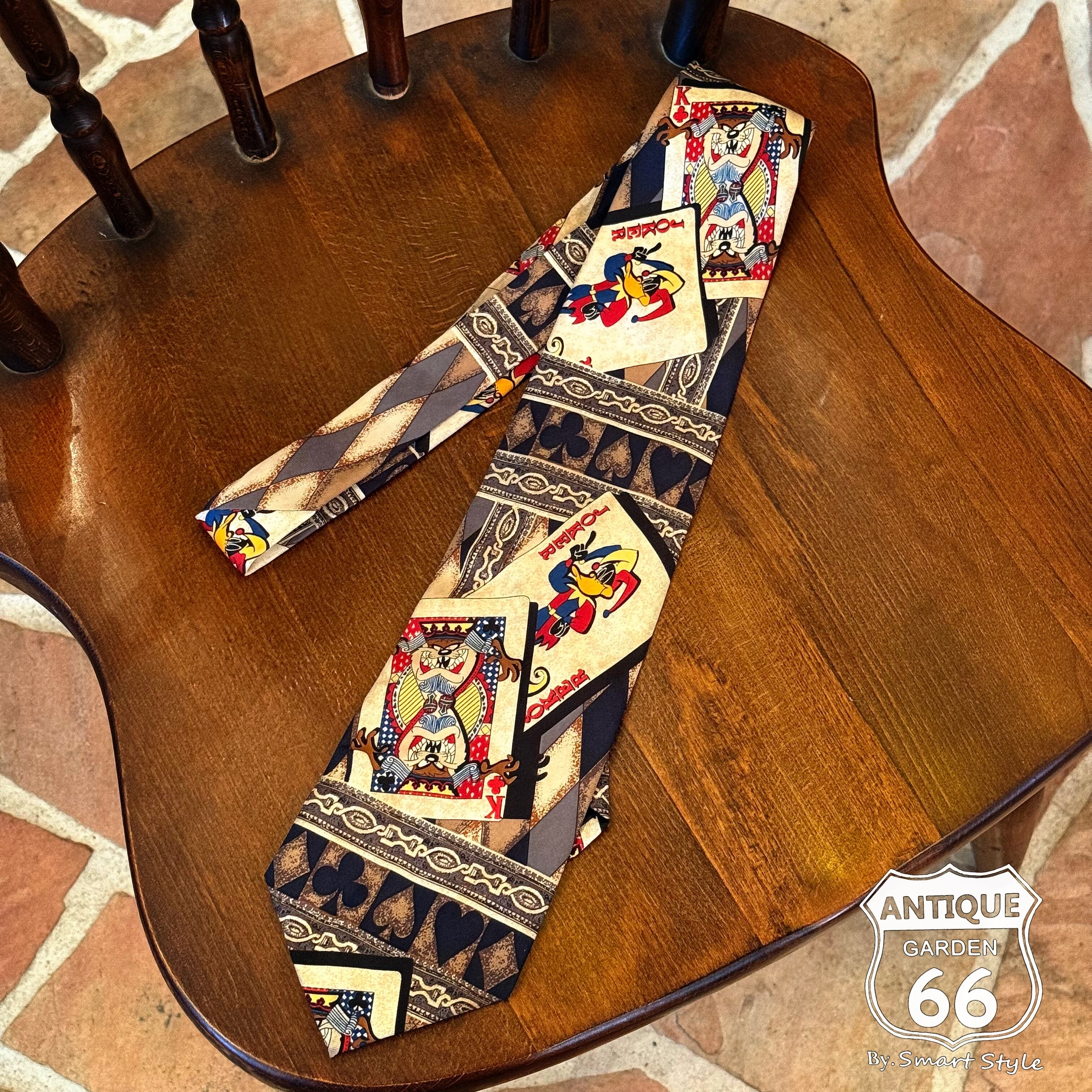 【送料込】90s WARNER ワーナー ルーニーテューンズ トランプ柄 ヴィンテージ ネクタイ 古着【R-001-002】