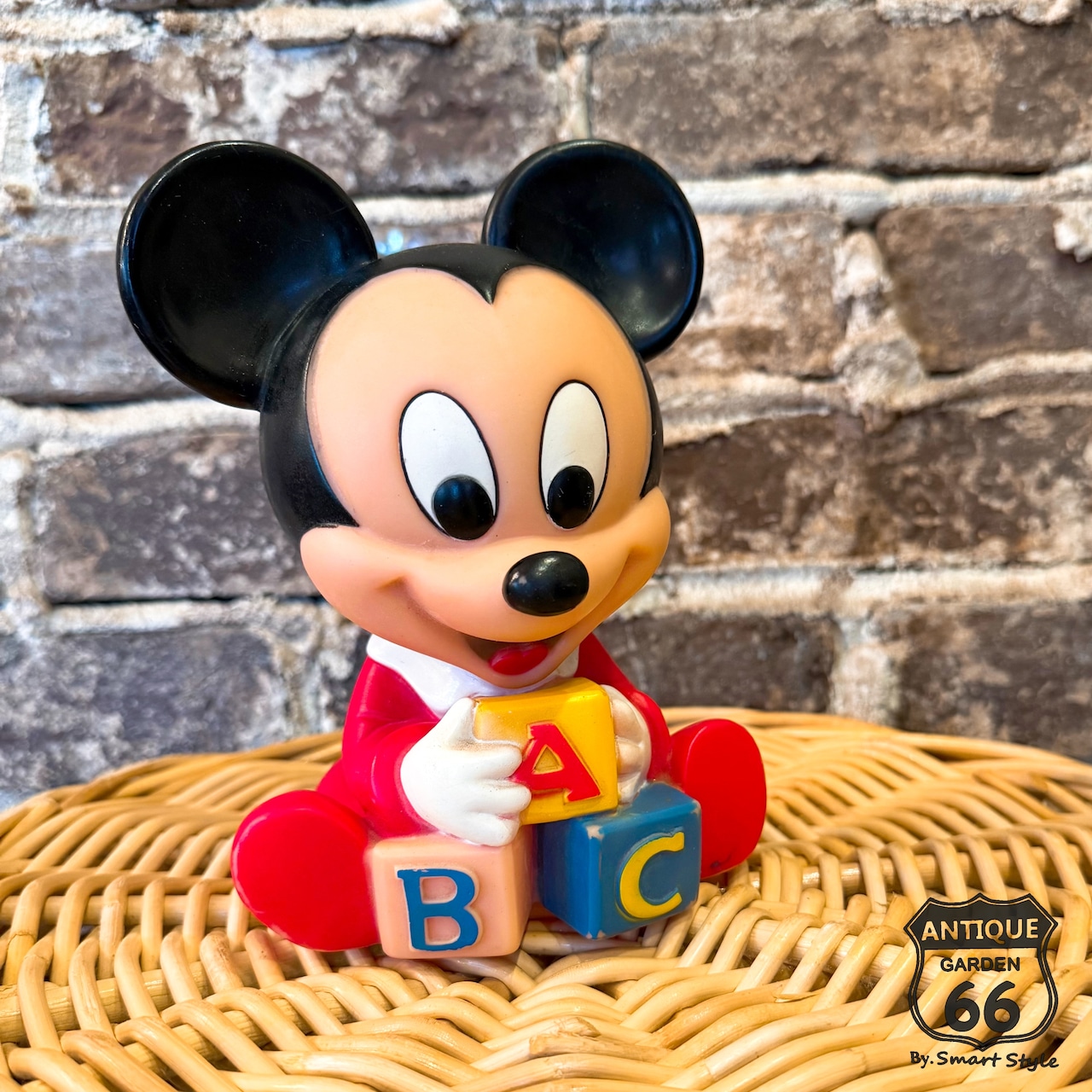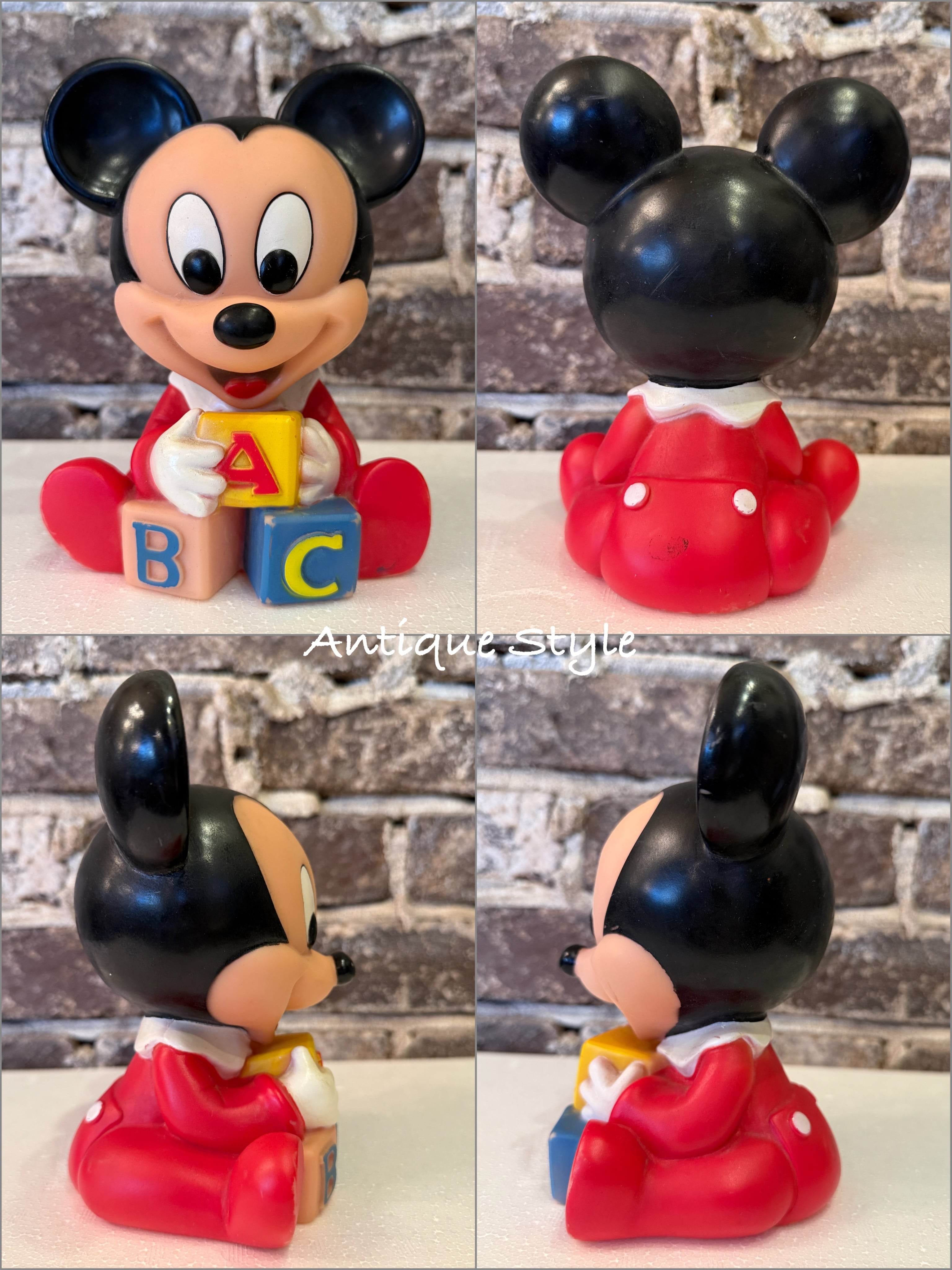 80s USA ヴィンテージ ディズニーベビー ミッキーマウス ABC ブロック ラバードール ベビートイ 【N-022a-008】