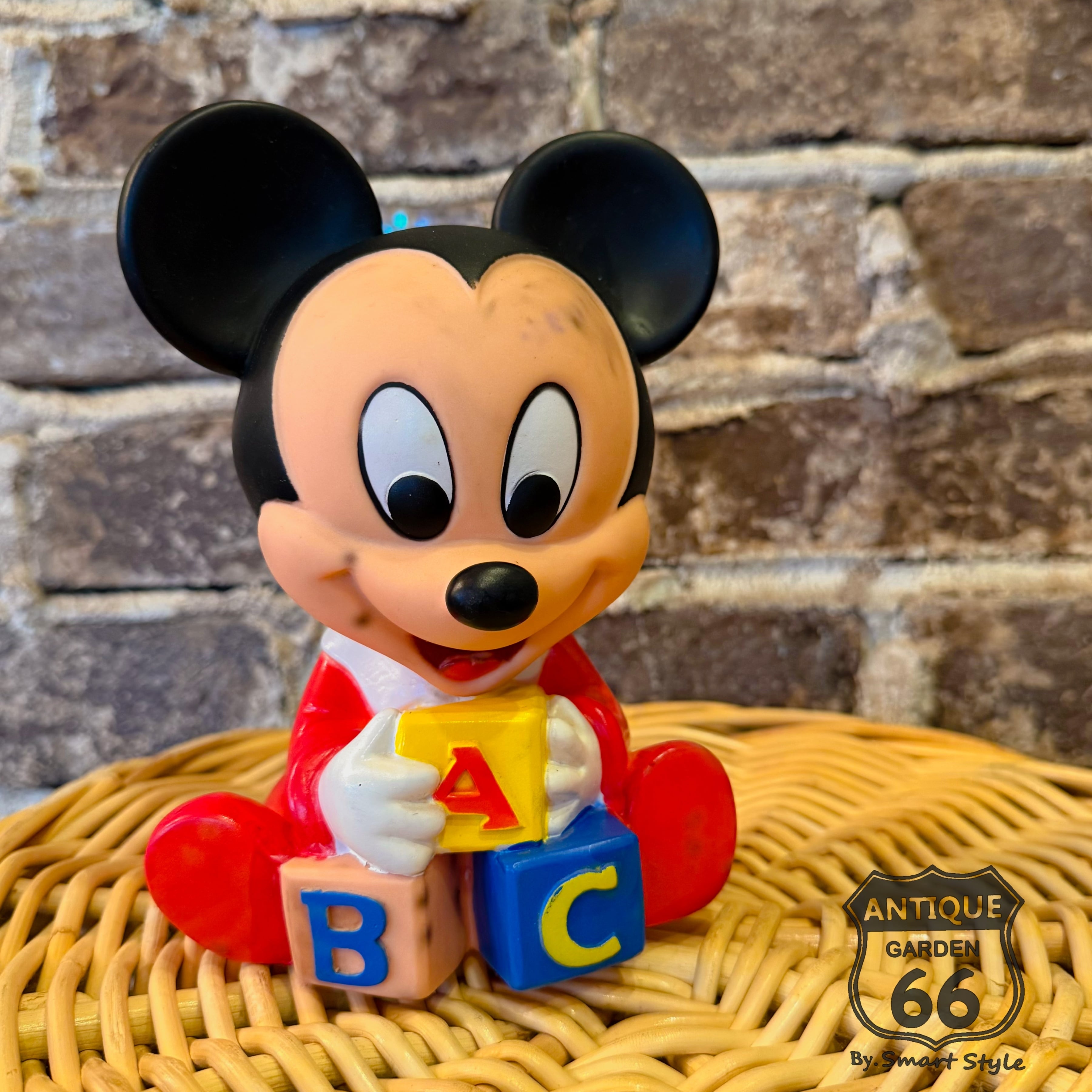 【難あり】80s USA ヴィンテージ ディズニーベビー ミッキーマウス ABC ブロック ラバードール ベビートイ 【L-134a-005】