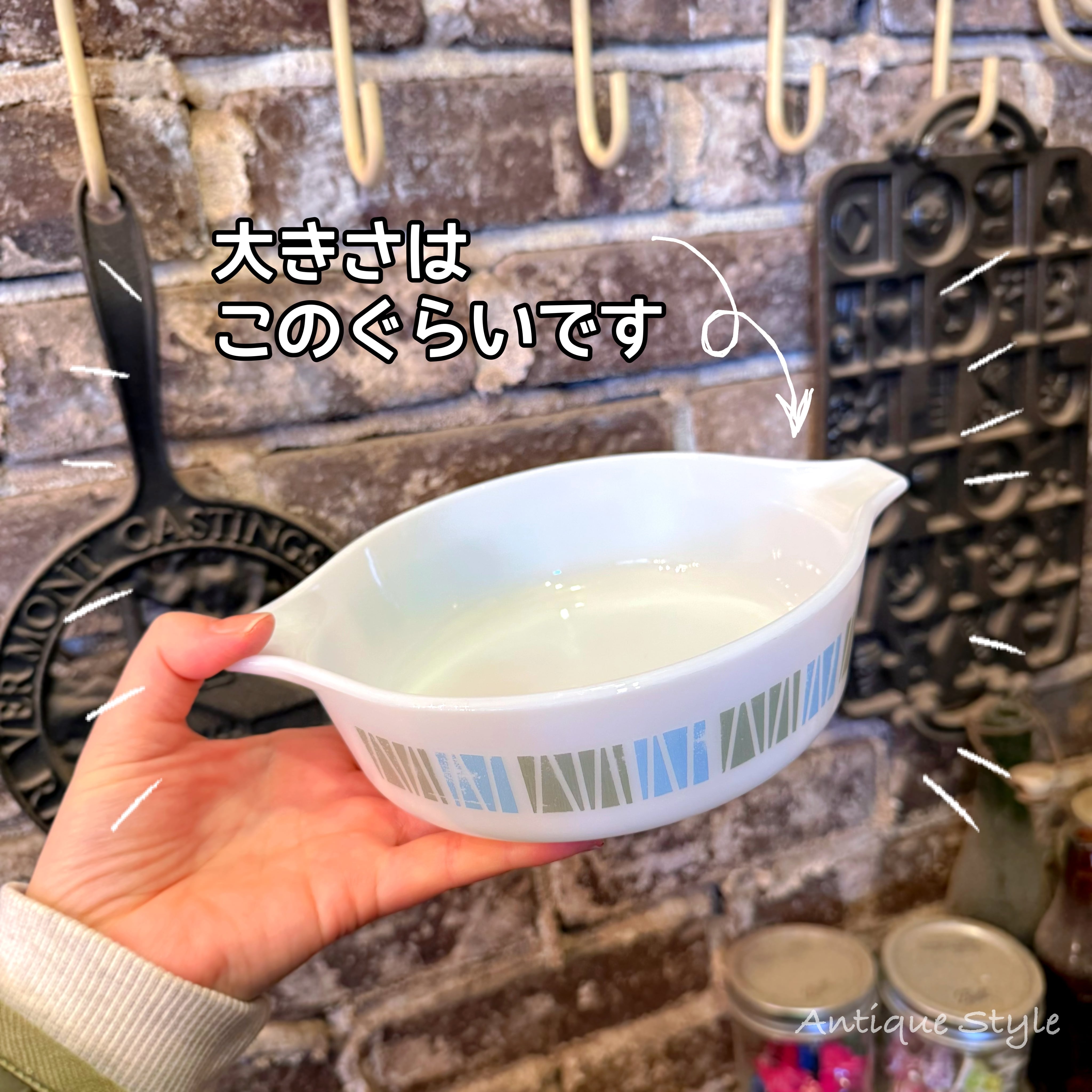 オールドパイレックスの 取っ手付き深皿です。