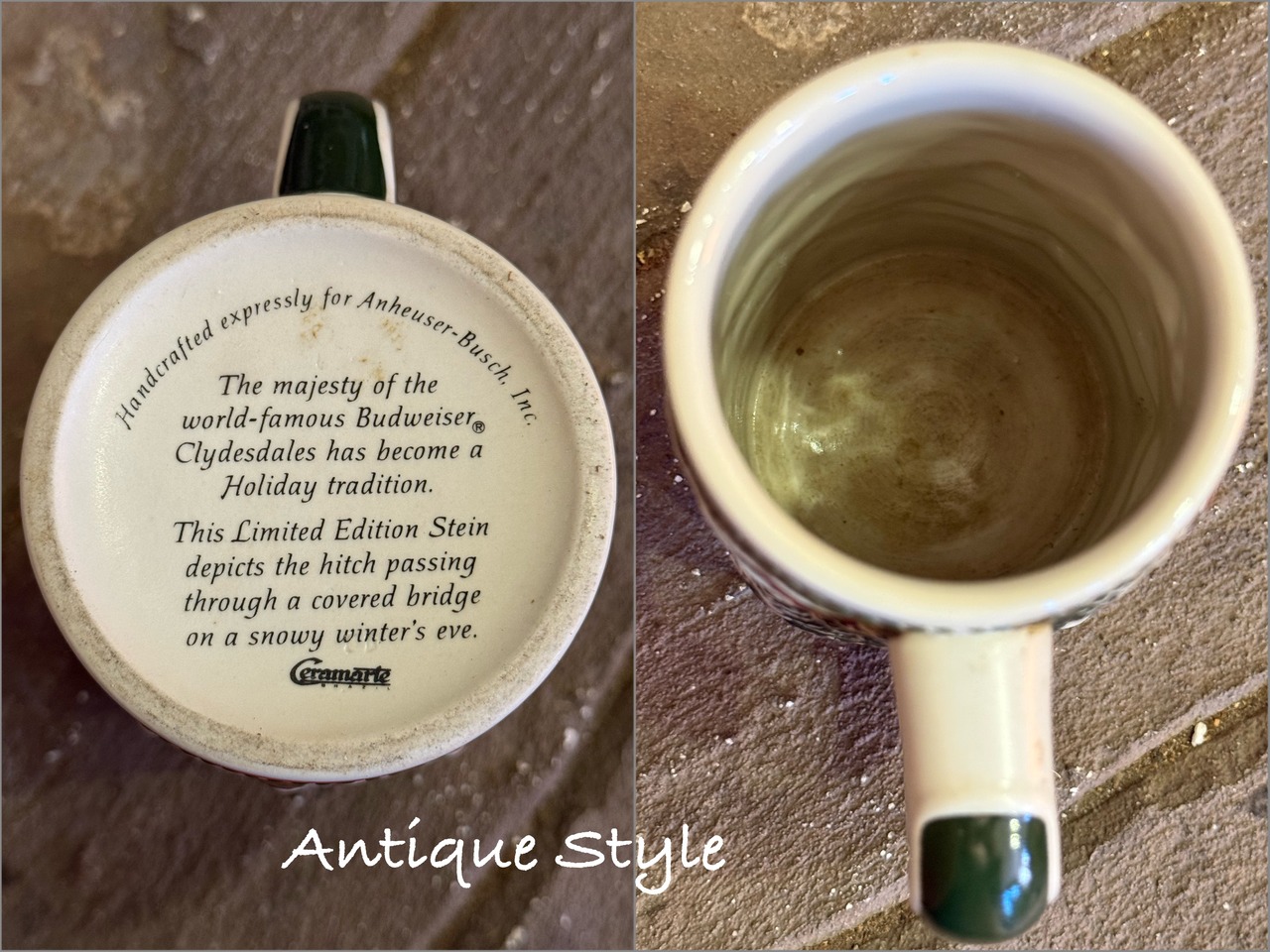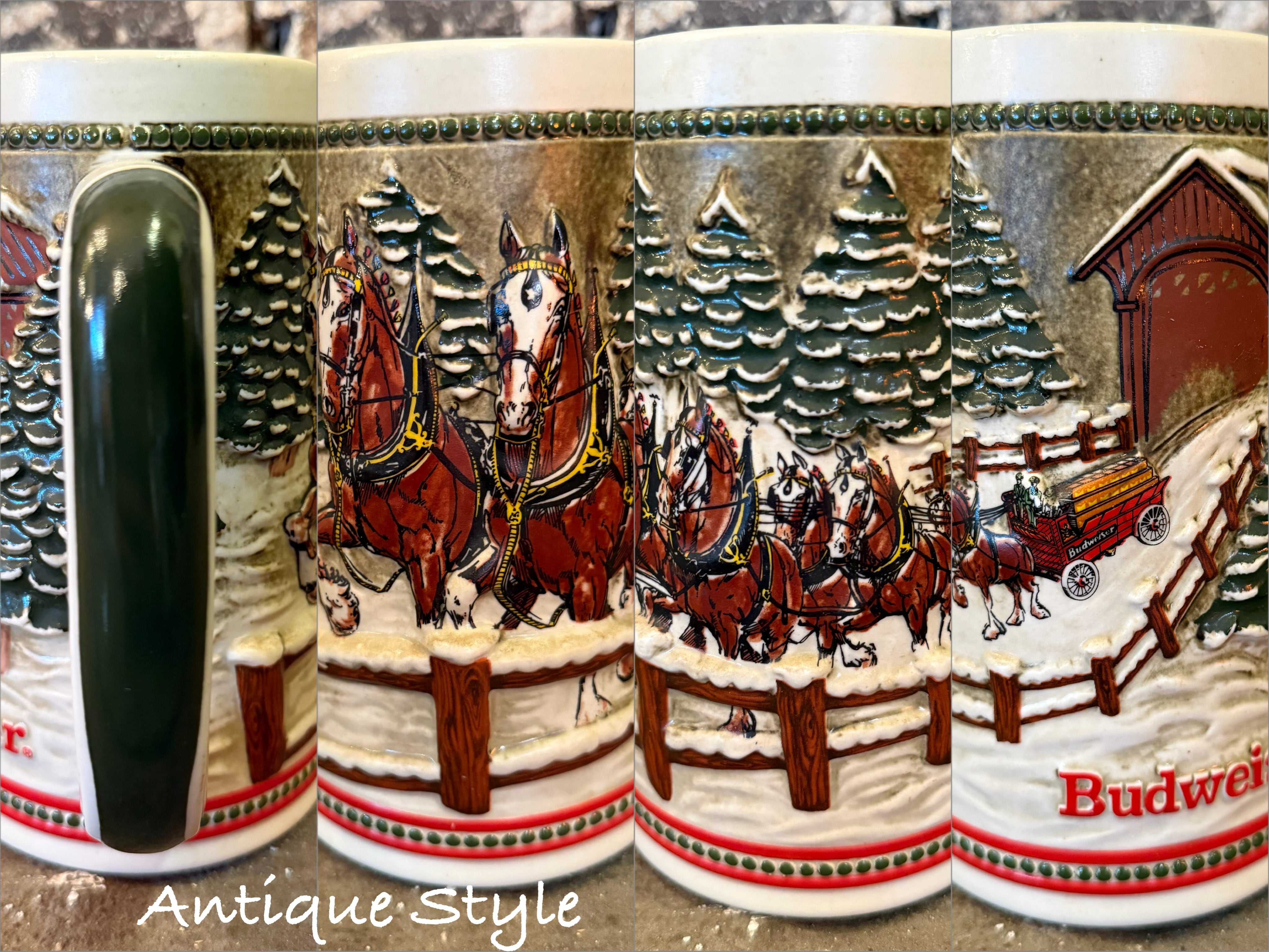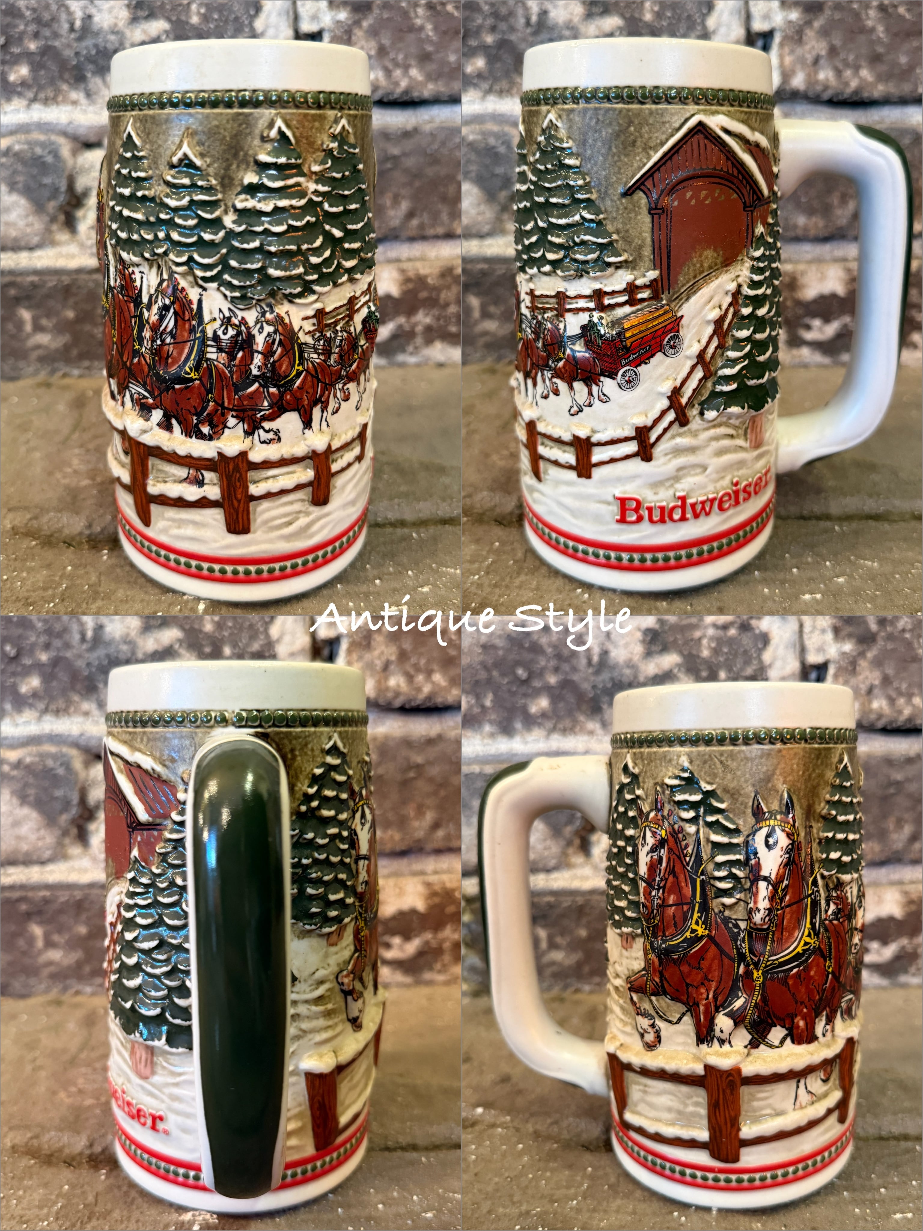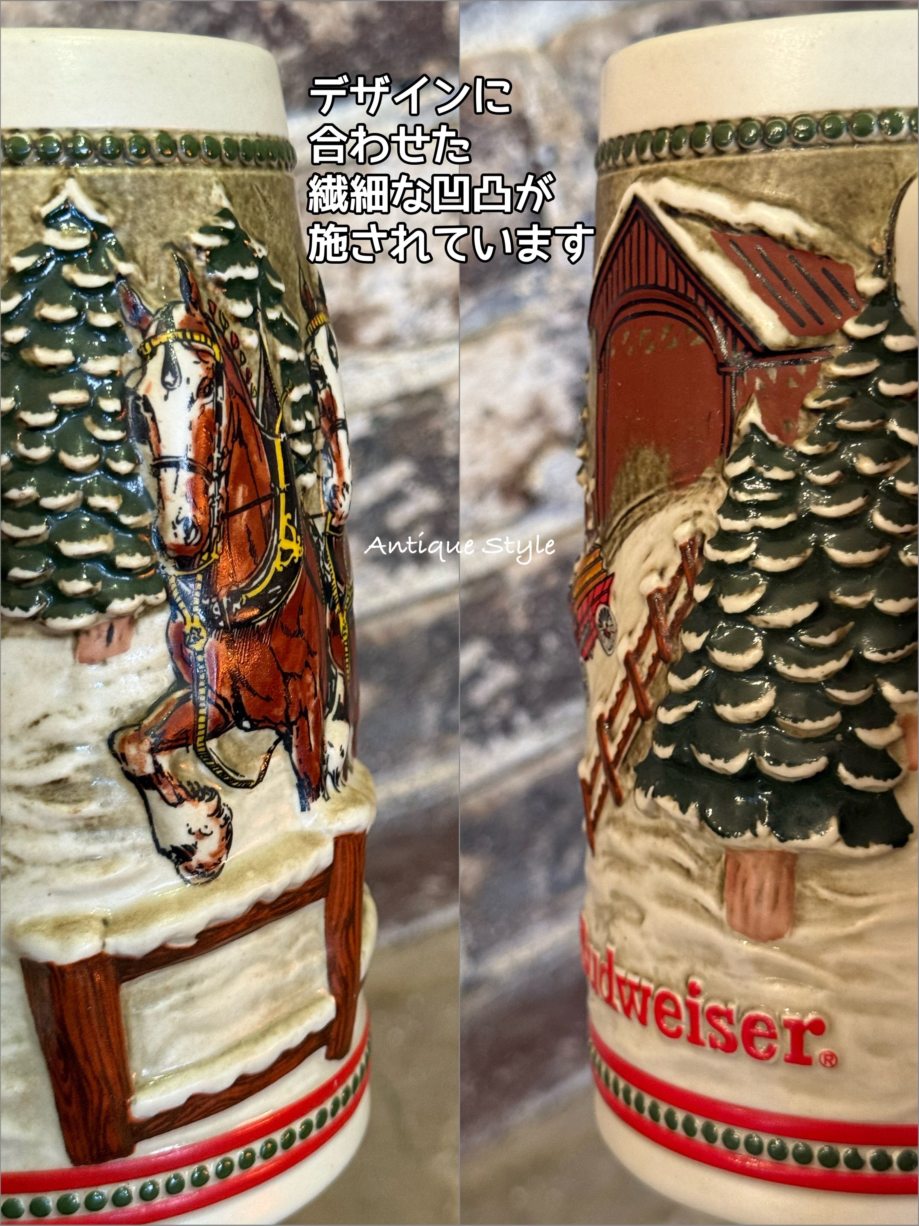 1984s ヴィンテージ Budweiser バドワイザー ビールジョッキ Clydesdales Holiday 陶器 ビアマグ 馬 ハンドクラフト 【I-0141c-004】