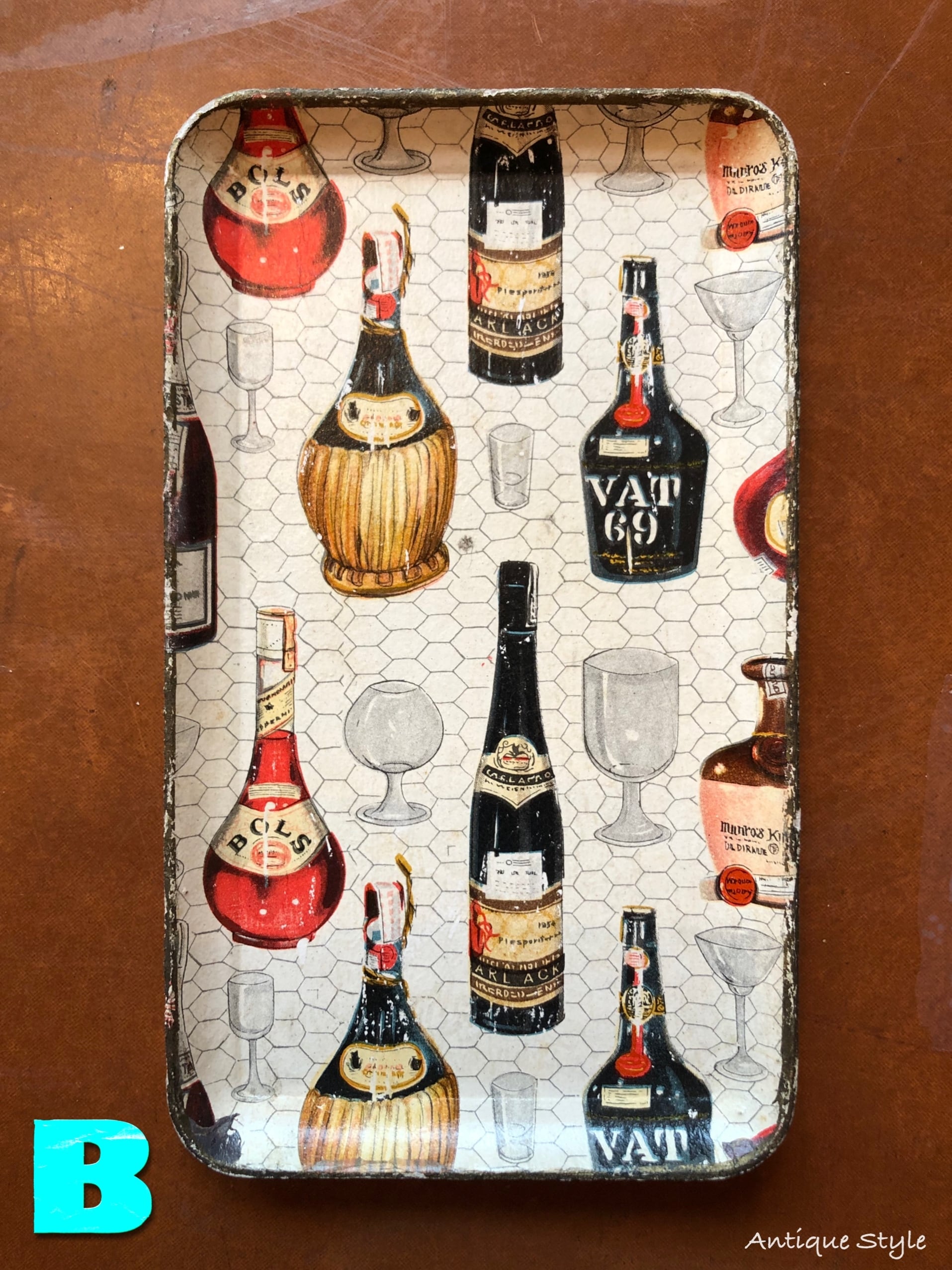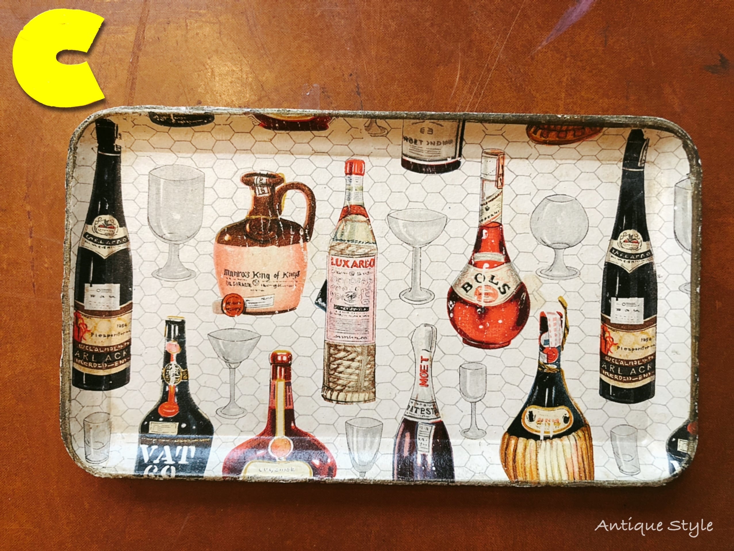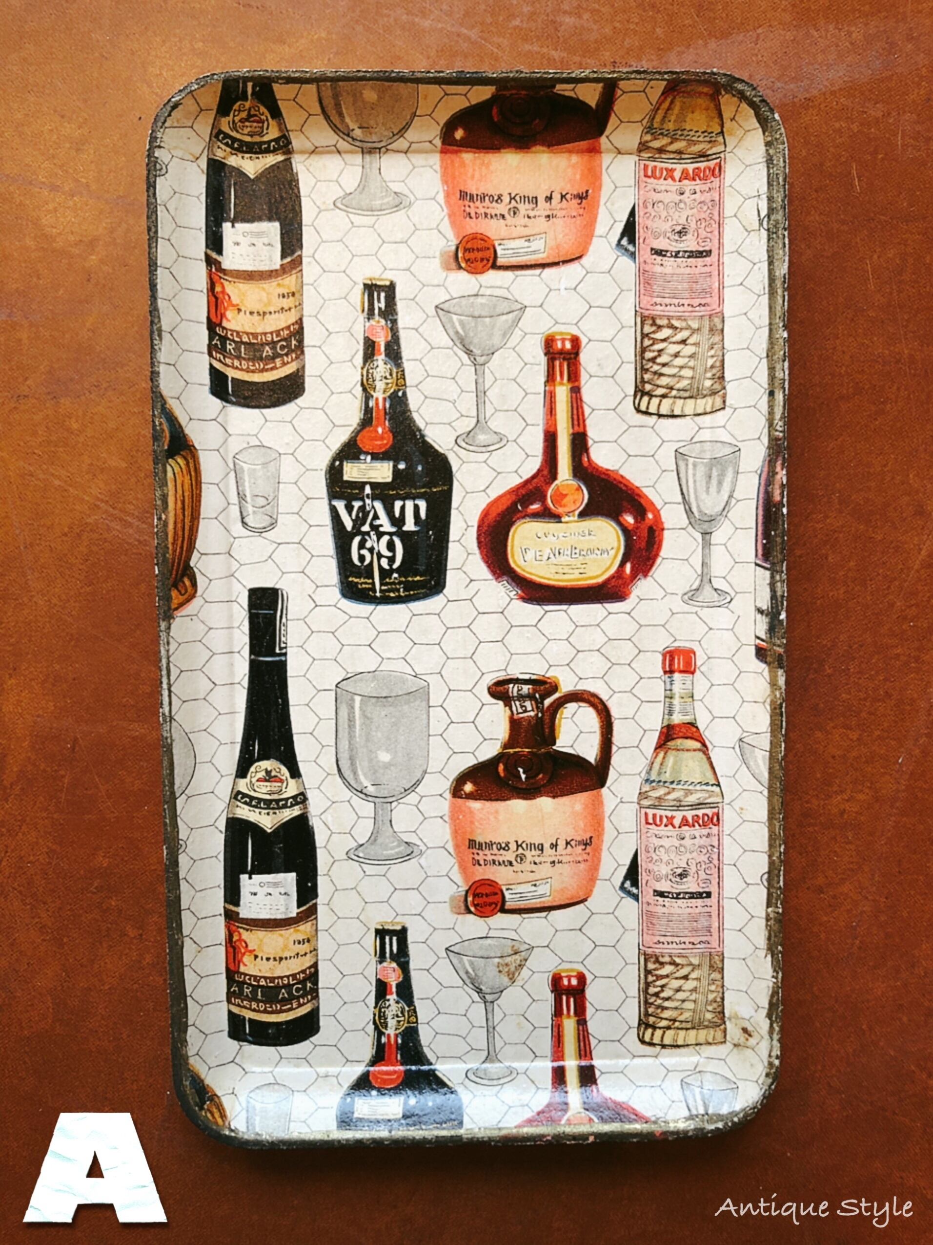 【メール便送料込】USA ヴィンテージ リキュール ボトル総柄 ミニトレイ キャッシュトレイ / コイントレイ 日本製【I-032-005】